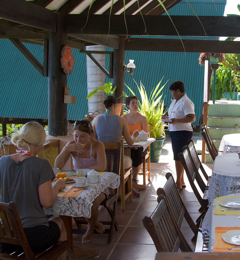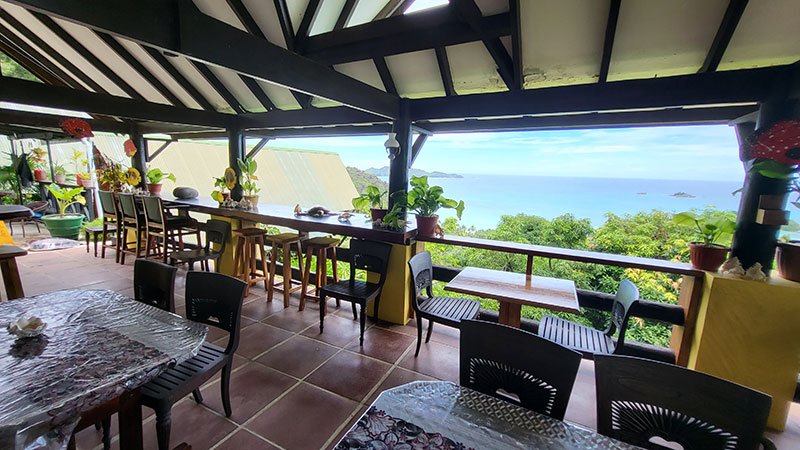 The Lodge has a restaurant offering a panoramic view of the ocean and the Cote D’or area, with a seating capacity of twenty people. Continental breakfast in offered in the restaurant including fresh local fruits, pastries, cheese, ham, jam and yoghurt.